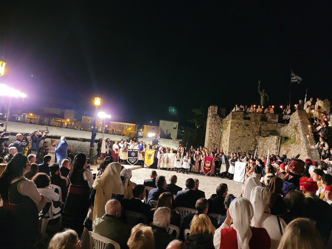 Ιδιαίτερη στιγμή των Εορτασμών αποτελεί το δρώμενο «Η Ναύπακτος Ελεύθερη», που θα παρουσιαστεί το βράδυ του Σαββάτου 25 Απριλίου, στο Ενετικό Λιμάνι της πόλης, μετά την Πομπή των Αρματωμένων, με ώρα έναρξης 20:45’.