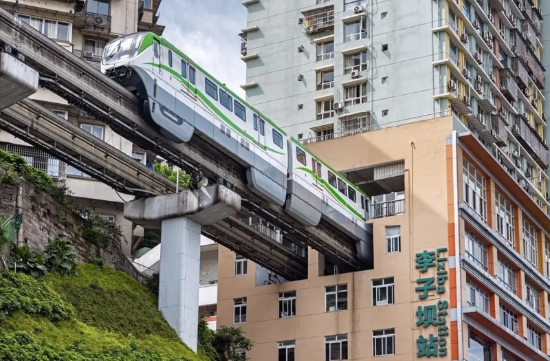 Το έντονο ανάγλυφο έχει επίσης οδηγήσει σε πρωτότυπες λύσεις μετακίνησης: τεράστια συστήματα γεφυρών, ανελκυστήρες που συνδέουν γειτονιές σε διαφορετικά επίπεδα και ένα από τα πλέον εκτεταμένα δίκτυα μετρό στην Κίνα.