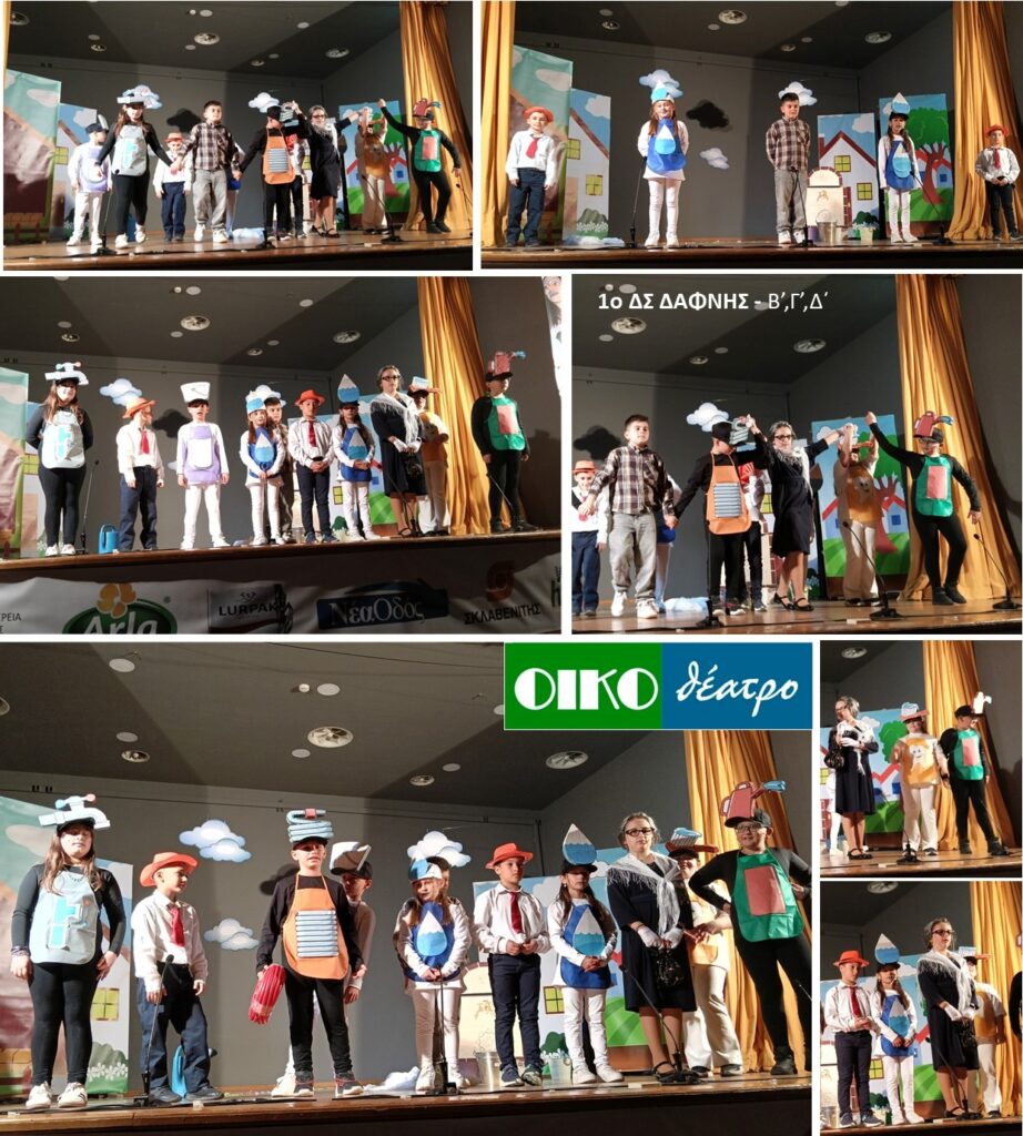 «Η περιπέτεια της τελευταίας σταγόνας» διασκευή από το 1ο ΔΣ Δάφνης Ναυπακτίας και τη μικτή θεατρική ομάδα του από τις Β’,Γ ’και Δ’ τάξεις. Τα παιδιά θύμισαν σε όλους πόσο πολύτιμο είναι το νερό και πόσο σημαντικό είναι να το σεβόμαστε. Με απλά παραδείγματα και δημιουργικές σκηνές μάς έδειξαν ότι ακόμη και μικρές καθημερινές πράξεις μπορούν να κάνουν μεγάλη διαφορά.