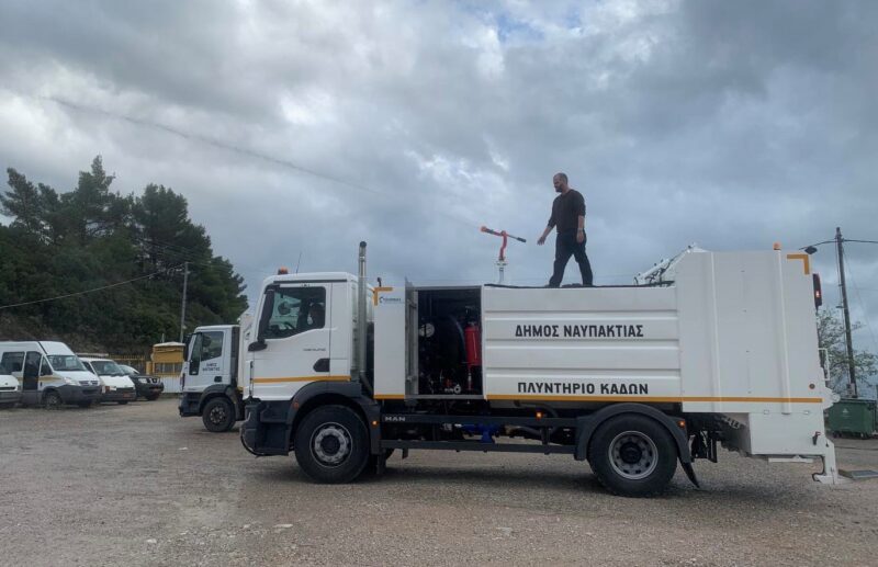 Αναλυτικότερα, ο Δήμος Ναυπακτίας έχει πλέον στη διάθεσή του ένα καινούργιο όχημα πλύσης κάδων χωρητικότητας 4.000 λίτρων με δυνατότητα πλύσης με ζεστό νερό σε υψηλή πίεση και απολύμανσης των κάδων με ειδικό υγρό ενώ, αναμένονται άμεσα τέσσερα νέα απορριμματοφόρα και ένα γκρέιντερ.