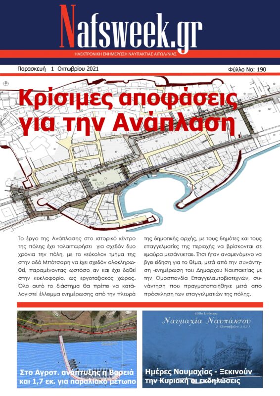 Με άποψη για τα όσα συμβαίνουν, ρεπορτάζ, συνεντεύξεις, παρουσιάσεις κυκλοφορεί το 190 ο φύλλο της ηλεκτρονικής συνδρομητικής εφημερίδας Nafsweek.gr , που κάθε Παρασκευή φθάνει στα e-mail των συνδρομητών μας.