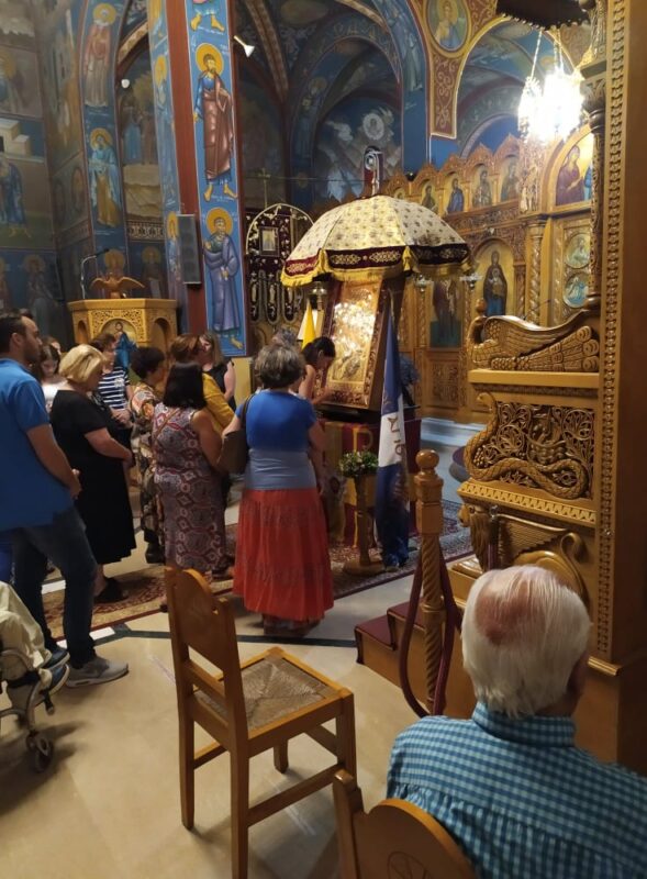 Στο τέλος, γονατιστοί μπροστά στην εικόνα της Παναγίας της Βηματάρισσας διαβάστηκε η ευχή, με την οποία παρακαλέσαμε να αποφευχθεί κάποιο θερμό επεισόδιο στο Αιγαίο και να επικρατήσει η ειρήνη».