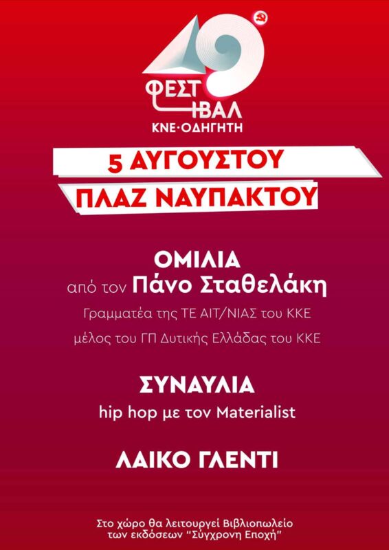 Το 49ο Φεστιβάλ ΚΝΕ-“Οδηγητή”, ξεκινά το ταξίδι του στην Αιτωλοακαρνανία από τη Ναύπακτο!
