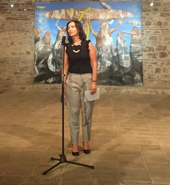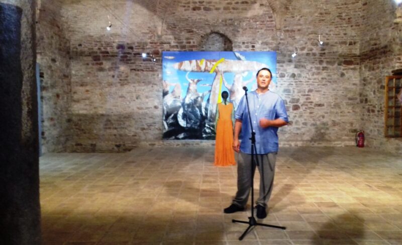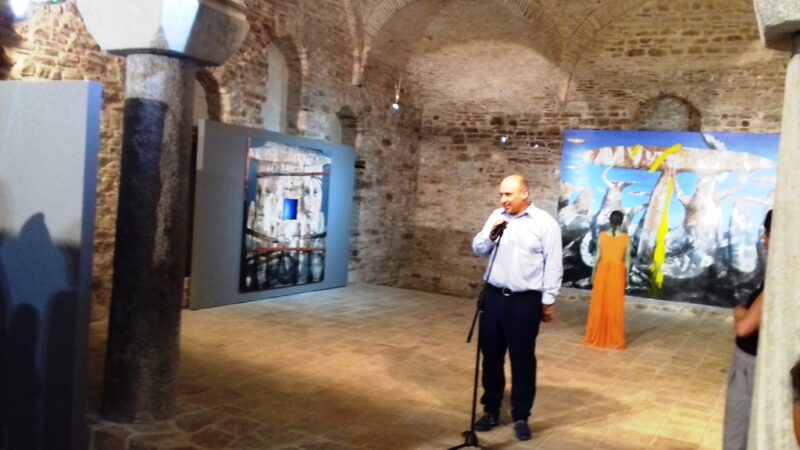 Ο Βαγγέλης Ρήνας στον χαιρετισμό του ευχαρίστησε τους παρευρισκόμενους για την υποδοχή και τη ζεστασιά που βρήκε στη Ναύπακτο, όπου για πρώτη φορά εκθέτει έργα του.