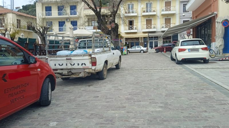 Σε χώρο στάθμευσης έχει μετατραπεί εδώ και καιρό το πλακόστρωτο δίπλα στο κτήριο «Ναυπακτία», με σταθμευμένα οχήματα να βρίσκονται  εκεί σε καθημερινή βάση.